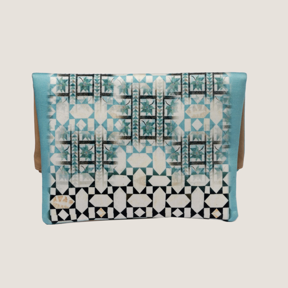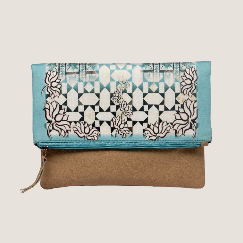 A fresh shade of blue used in the print created with the Ancient Tile Artwork of India, teamed up with a beautfiul beige leather making this clutch a perfect pick for this summer!!