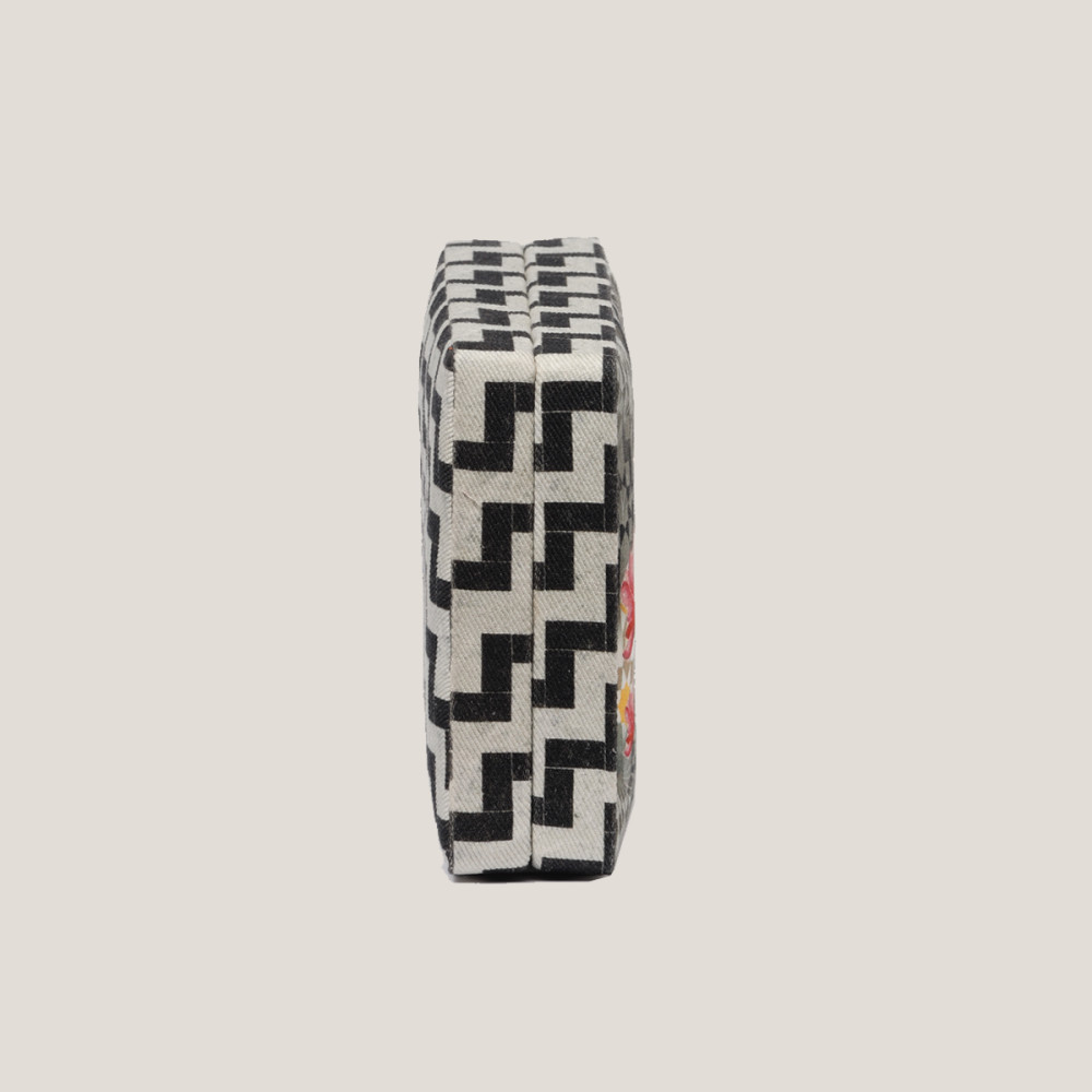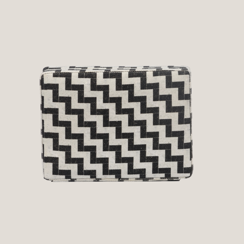 Interestingly created chevron patterns with the Floor Art of Ancient India, and further enhanced with red lotus and the box frame, this clutch is definitely a headturner!!!