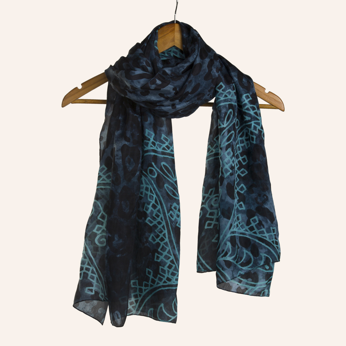 Be the first to review “Electric Blue Animal Print Silk Scarf”