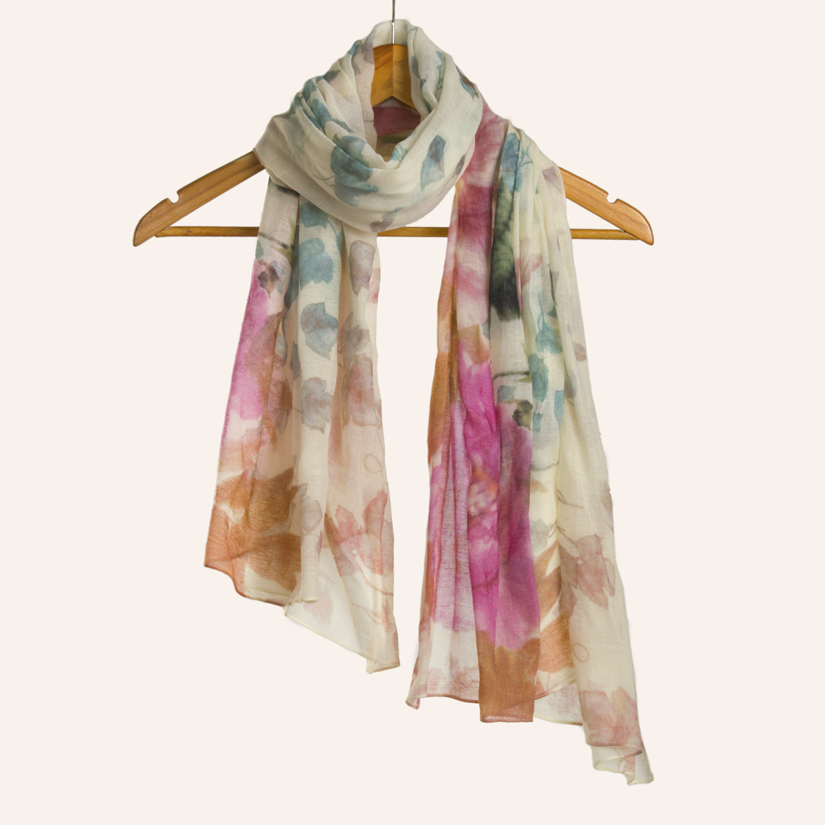 Gorgeous floral scarf with breathtaking hues of blush!! A soothing and classy pick you can never go wrong with.
