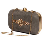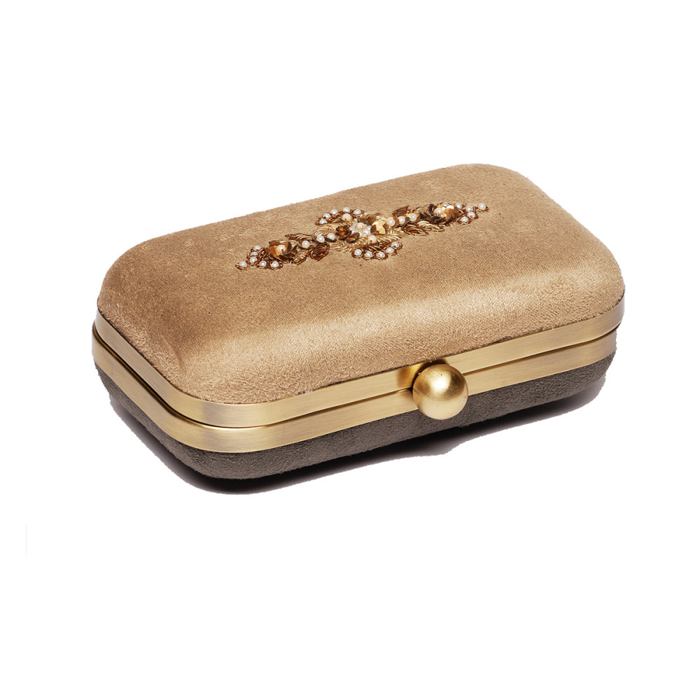 | Material | Brass frame with clasp closure, Lining – Black polyester satin, Main Fabric – Suede |