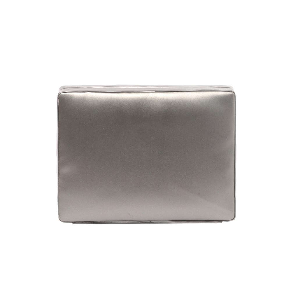 Pop colored lotus, old indian structure and a beautiful floor art from ancient India, A coalition of unheard and varied elements put together in this spectacular print elegantly combined with leather to make this box clutch a beautiful pick.